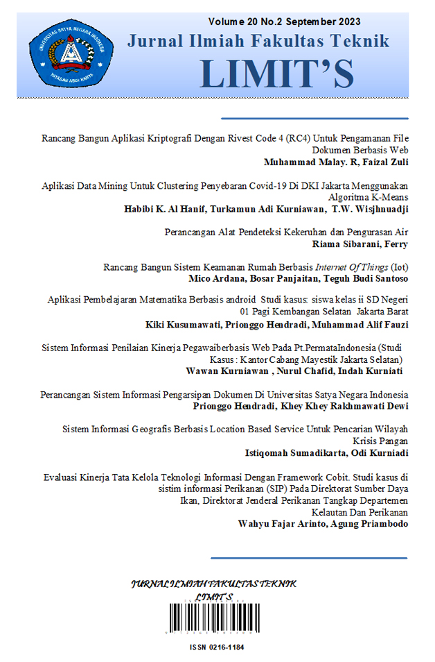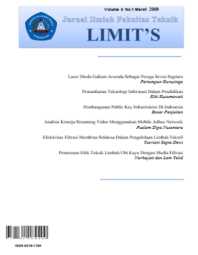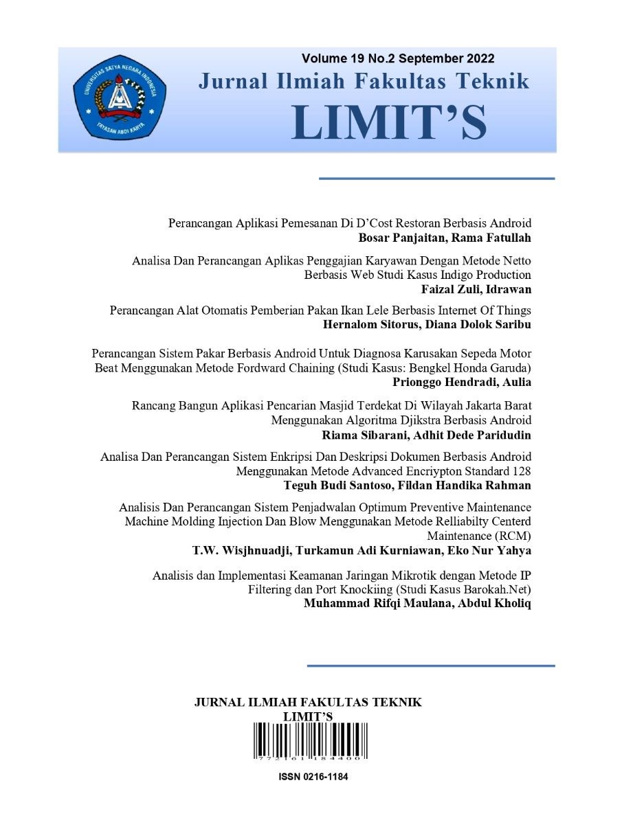 Jurnal Limits adalah informasi yang menyajikan tentang ilmu pengetahuan dan informasi penelitian dan pengembangan terkini yang berhubungan dengan bidang Ilmu Pengetahuan lain dan Teknologi Informasi yang ada di Univeritas Satya Negara Indonesia (USNI). Jurnal LIMITS merupakan sarana publikasi dan ajang berbagi karya riset dan pengembangan di Fakultas Teknik Universitas Satya Negara Indonesia (USNI).Pemuatan artikel di jurnal ini dapat dikirim ke alamat Penerbit yang tercantum dibawah ini. Informasi lebih lengkap untuk pemuatan artikel tersedia pada halaman terakhir yakni pada pedoman Penulisan Jurnal Ilmiah atau dapat dibaca pada setiap terbitan yang ada pada website OJS Teknik Informatika. Artikel yang masuk akan melalui proses selekasi editor atau mitra bestari. Jurnal ini terbit secara berkala sebanyak 2 (dua) kali dalam setahun yakni Februari dan Oktober yang kemudian mengalami perubahan terbit setelah pergantian pengurus menjadi Maret dan September, Jurnal Limits merupakan Jurnal Khusus untuk menyebarkan Karya Tulis dibidang segala hal yang berkaitan ilmu pengetahuan segala bidang.